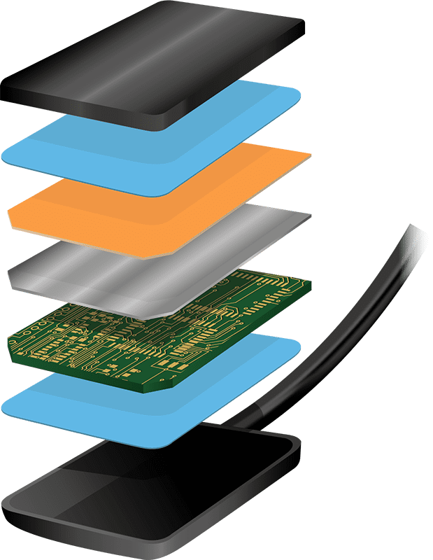 Die integrierten elastischen Schichten (Anti-Schock-System) schützen den Sensor vor Beschädigungen durch Stürze oder Druck.