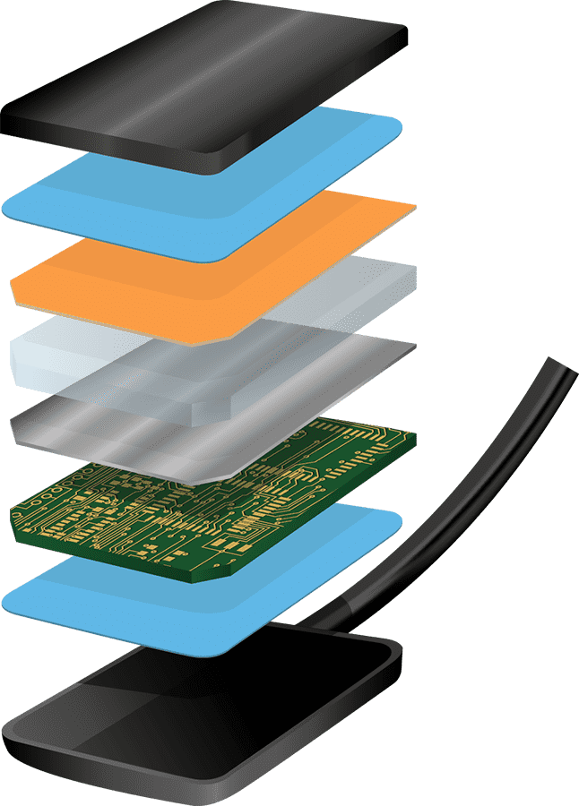 Die integrierten elastischen Schichten (Anti-Schock-System) schützen den Sensor vor Beschädigungen durch Stürze oder Druck.